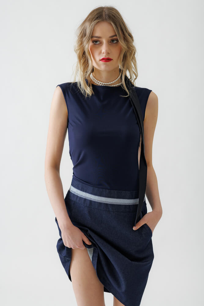 Für die Kollektion verwendet die Designerin ausschließlich sorgfältig ausgewählte Designer Leftover Fabrics – hochwertige Stoffe aus Überproduktionen internationaler Modehäuser.